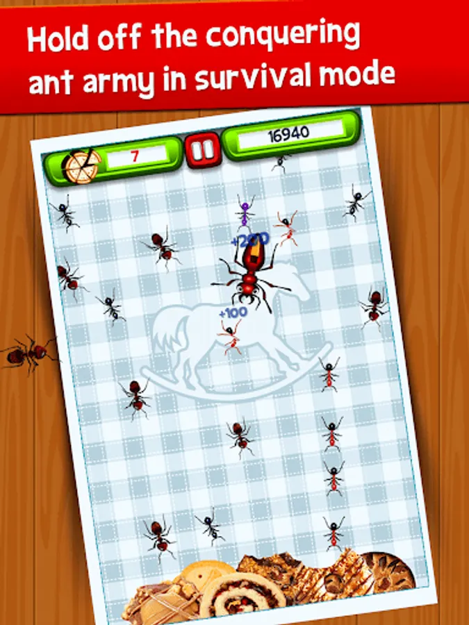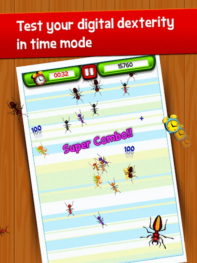 Tap to squeeze the ants’ army and kill the monster ants for bonus scores.