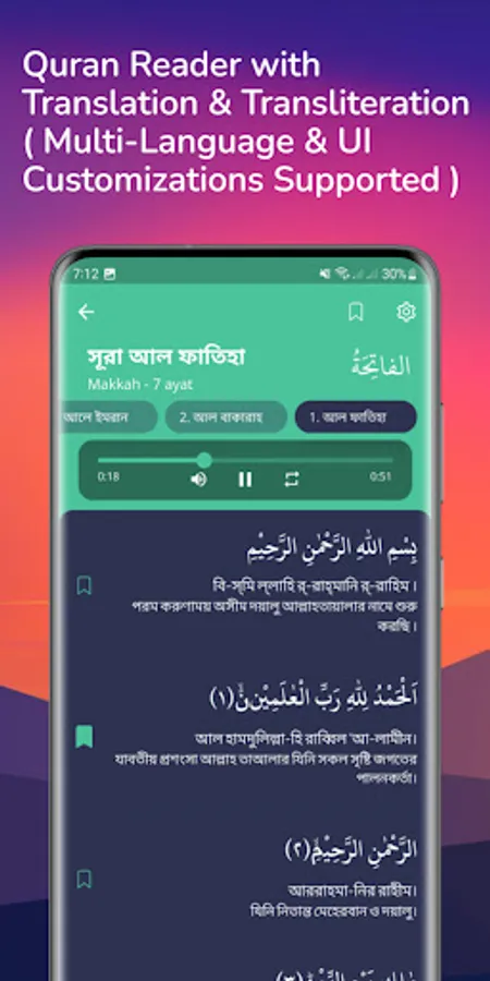 2. Quran with Translation & Transliteration (multi-language supported)