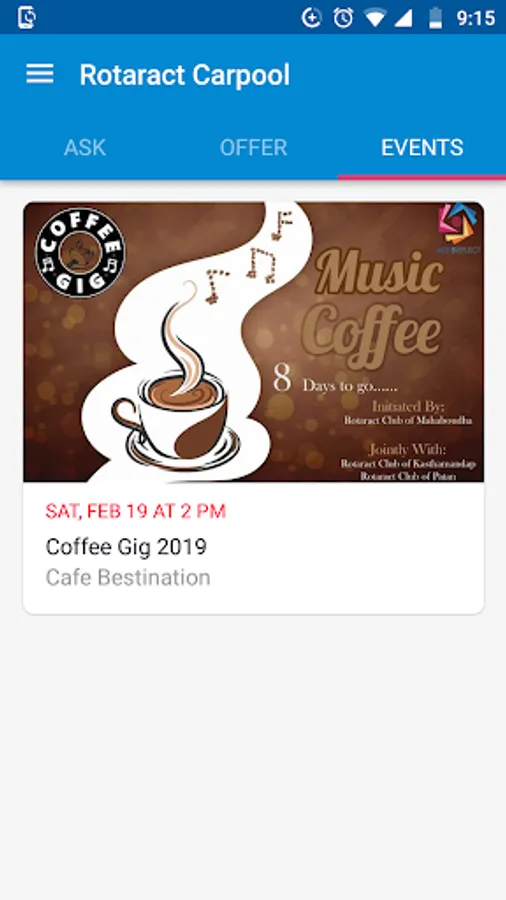 Rotaract Carpool is an for making offer and asking for ride, besides that you can view events related to rotaract.