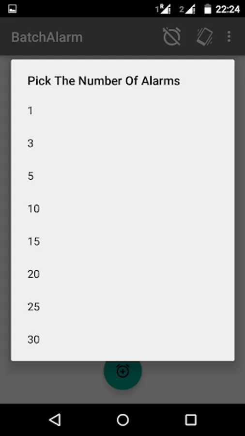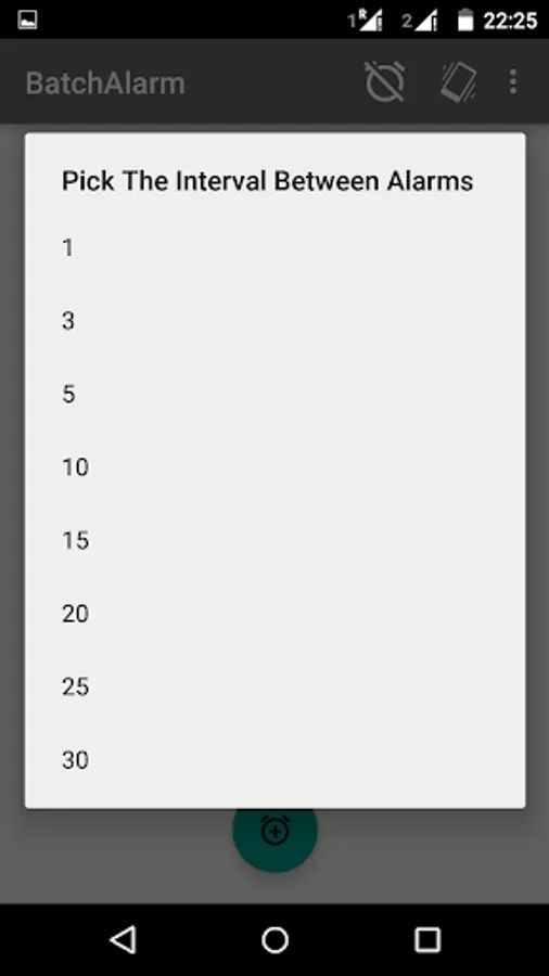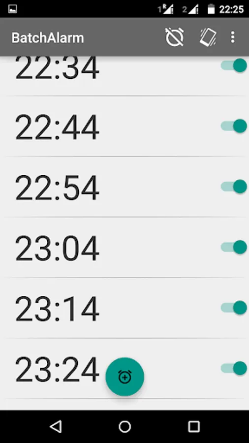 Pick the start time, the number of alarms, the time interval between each alarm and the app will automatically populate the alarms.