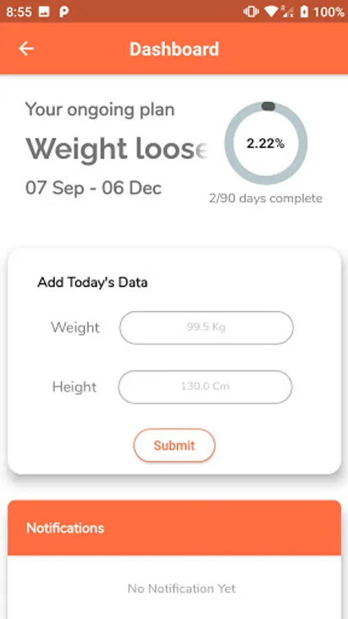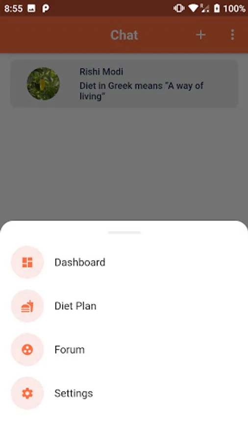 Rishi Modi's Diet Management app is created to serve Rishi Modi's client. It helps them to chat with the dietician, send their food log daily, add their weight daily, monitor their progress and help them achieve their weight loss goal.