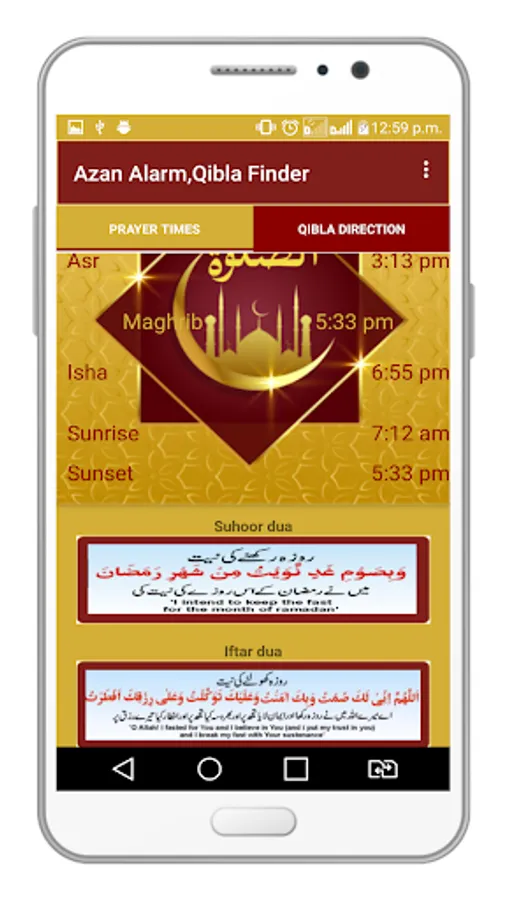 App(Azan Alarm, Qibla finder) also known as auto azan alarm developed by Rising Apps. App is totally free android app and very helpful and shows worldwide prayers timing, prayers alarm, qibla finder, and Ramazan alarm, the app is specially designed for Muslim Brothers and Sisters. App Gives Sehri/Iftar timings for the holy month of Ramazan. Ramazan which is also known as Ramadan is the 9th month of Muslim Calendar. Its the holy month in Islam because Quran was revealed in this month. Muslims fast for 29-30 days in this month and pay their duty as it is is regarded as one of the Five Pillars of Islam. You can use ramadan app after eid ul fitr too and this app is an auto azan alarm that can be used in all over the world and find qibla direction on everywhere with the help of the internet. namaz alarm and namaz/salah timing are available for all over the world. In this App you have an option to chose time format, two option is there, one is 12hrs and second one is 24hrs. Daily azan alarm and you can change or find namaz/salat timing for any timezone.