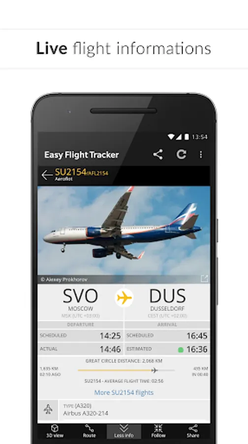 Do you want to check, which planes are currently flying above your house or identify the point of departure, type of aircraft and airline at the same time? Do you want to just find out where family members, friends or business partners are, because you are tired of worrying? No problem - you have these bits of information at hand thanks to Easy Flight Tracker!