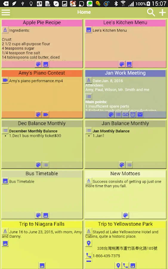 ‧Categories, tags and colors help you manage and differentiate various notes.
