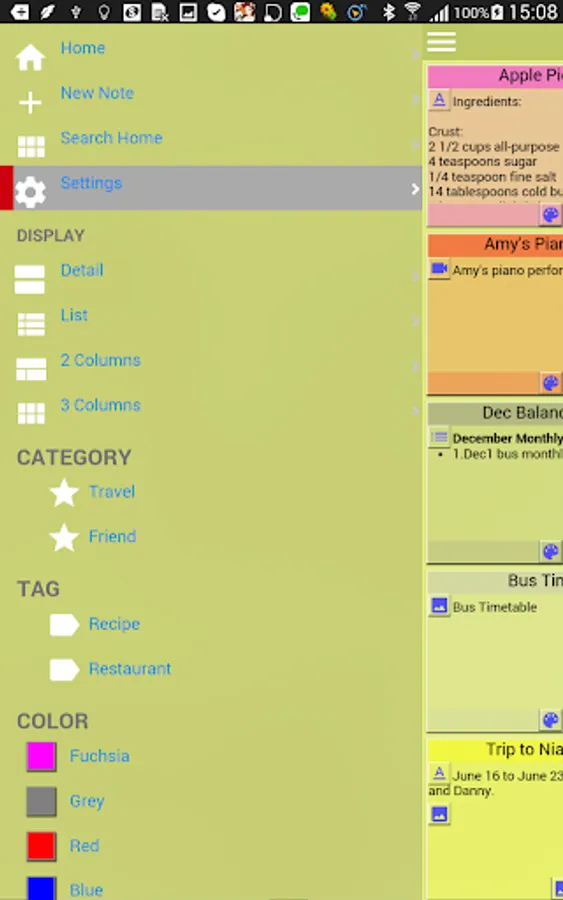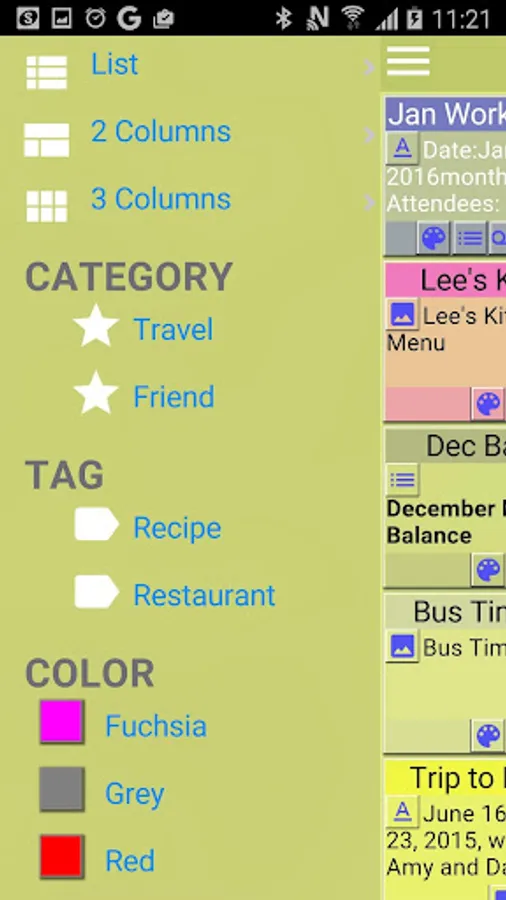 Label your notes with different colors, tags, and categories, so notes with the same color, tag, or category appear together.