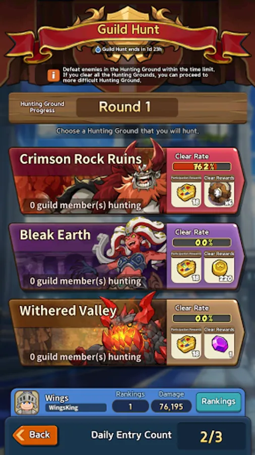 Obtain gifts and victory rewards given daily and watch your Guild grow.