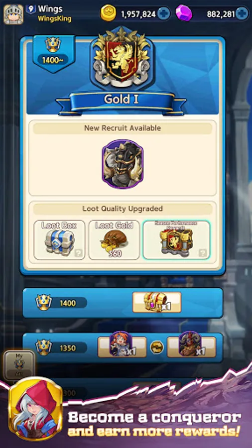 Experience many battles to become the best conqueror and achieve rewards given to conquerors.