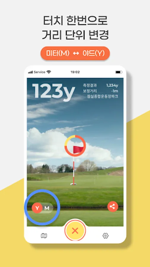 - Change distance unit: Yard (Y) ↔ Meter (M)