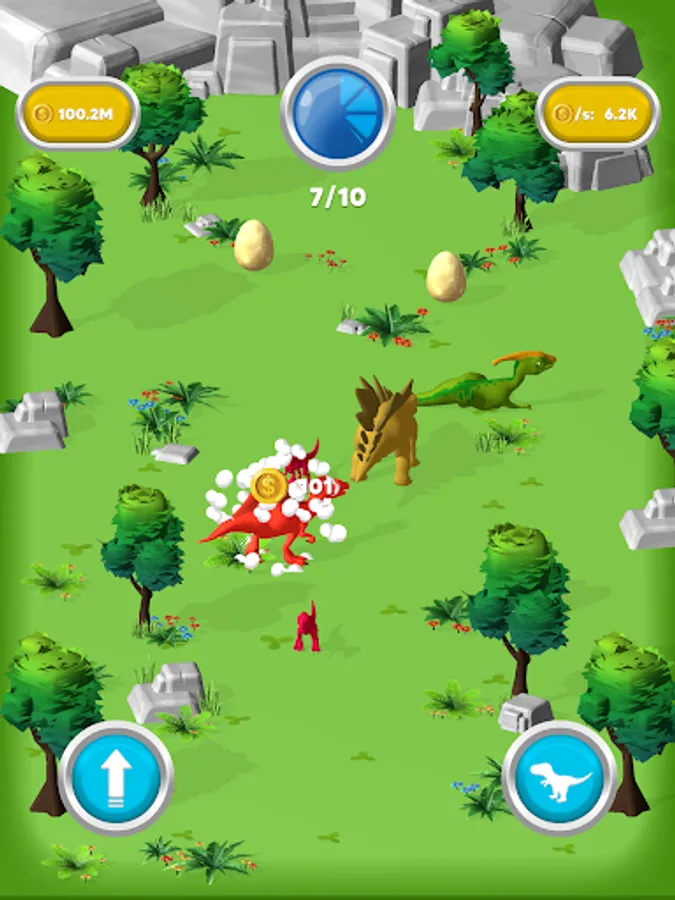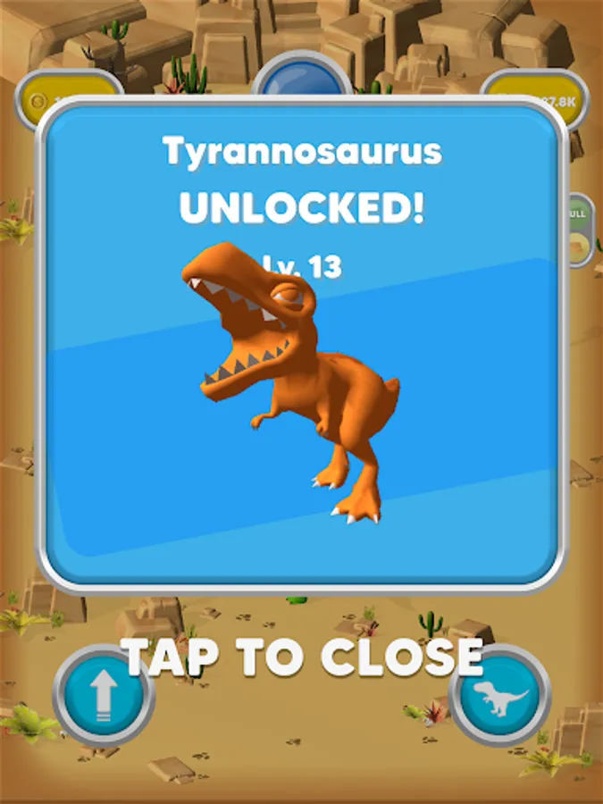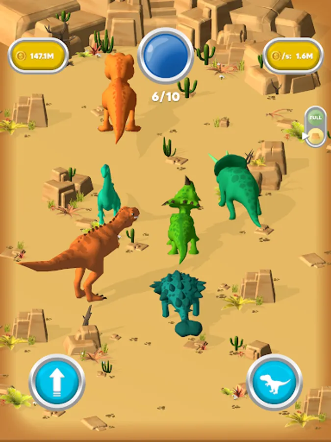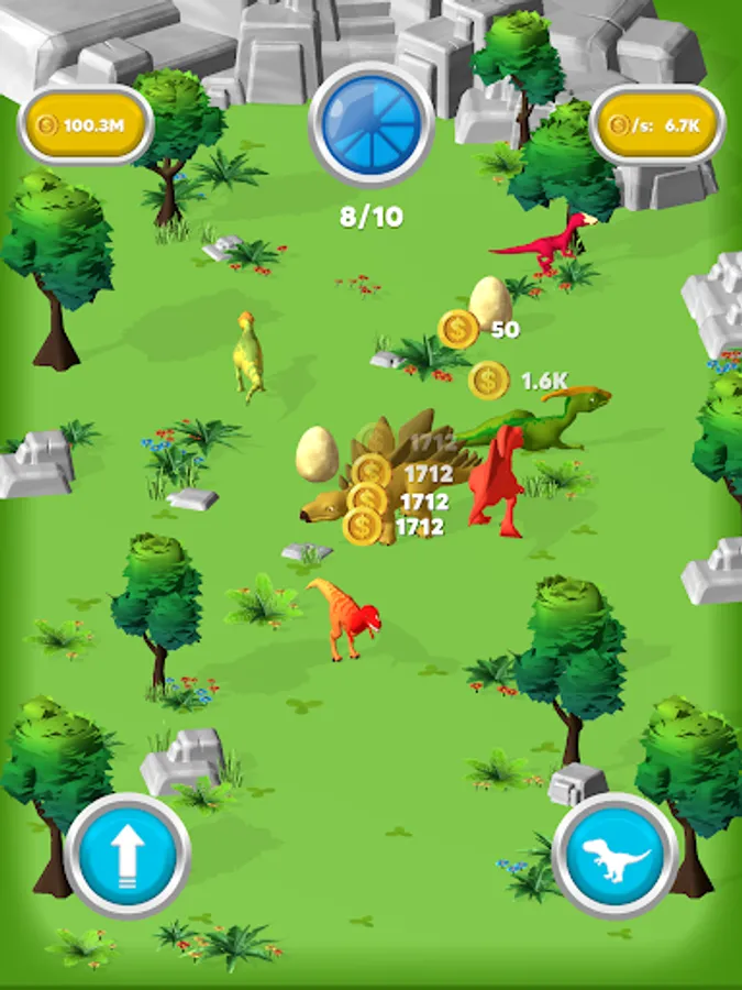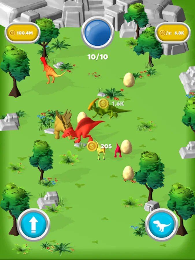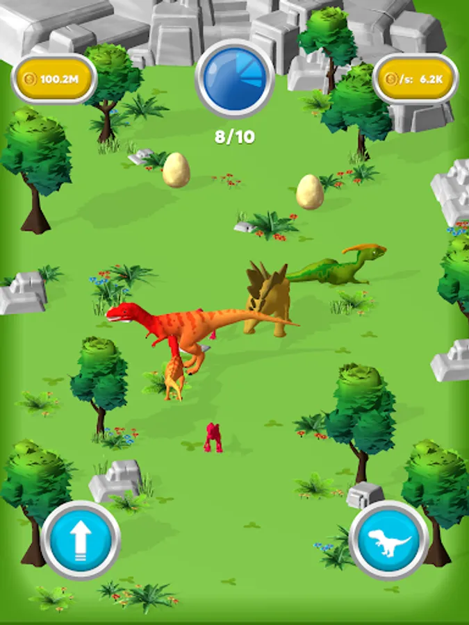 In this game, you will make evolve dinosaurus. Starting from an egg, merge two similar dinosaurus to discover a new one and even get your hands on the legendary tyrannosaurus! You can tap on each dinausorus to earn more coins which can be used to buy several incrementals helping you to reach the tyrannosaurus way faster than without them. You will also be able to immediatly buy a dinausorus of a certain level if you don't want to wait to get it. If you have enough dino and reach the dino level recquired you will unlock a new environment to discover.