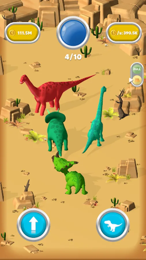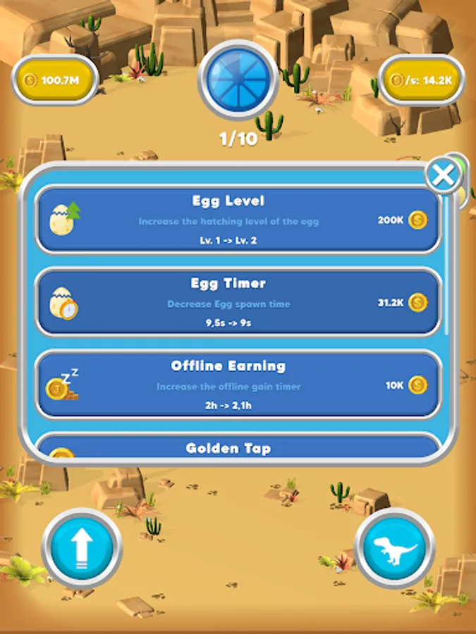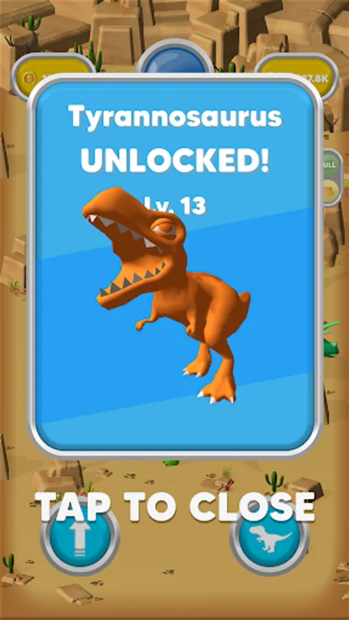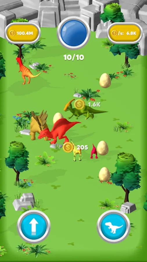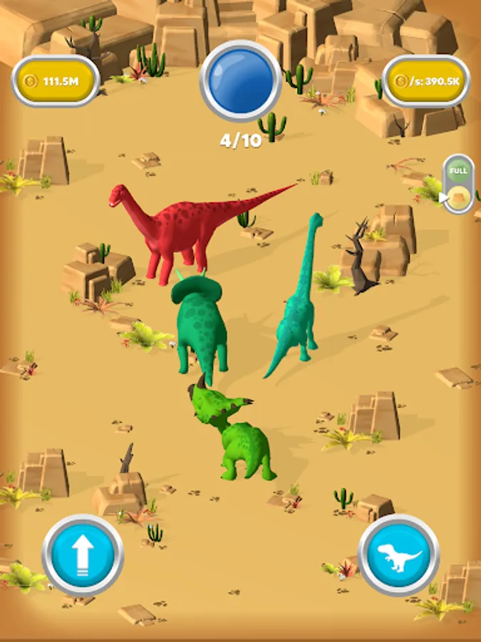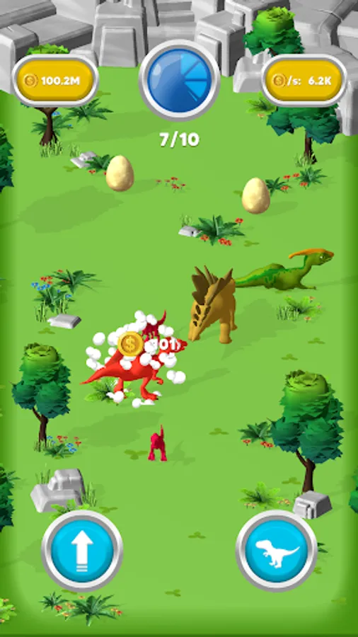 In this game, you will make evolve dinosaurus. Starting from an egg, merge two similar dinosaurus to discover a new one and even get your hands on the legendary tyrannosaurus! You can tap on each dinausorus to earn more coins which can be used to buy several incrementals helping you to reach the tyrannosaurus way faster than without them. You will also be able to immediatly buy a dinausorus of a certain level if you don't want to wait to get it. If you have enough dino and reach the dino level recquired you will unlock a new environment to discover.