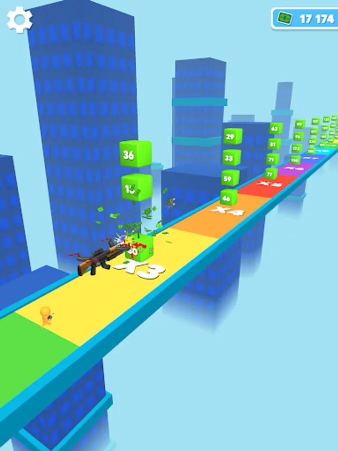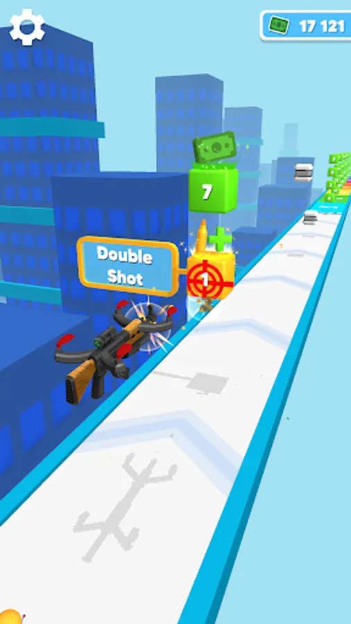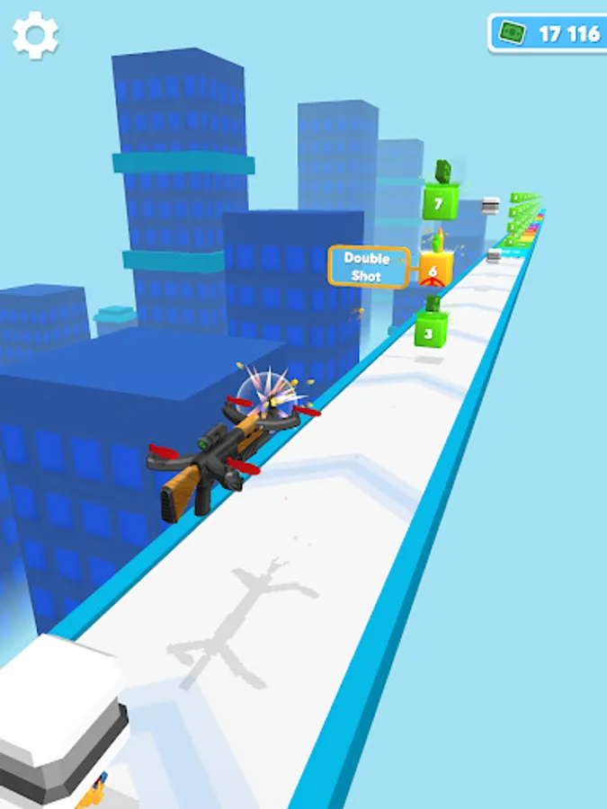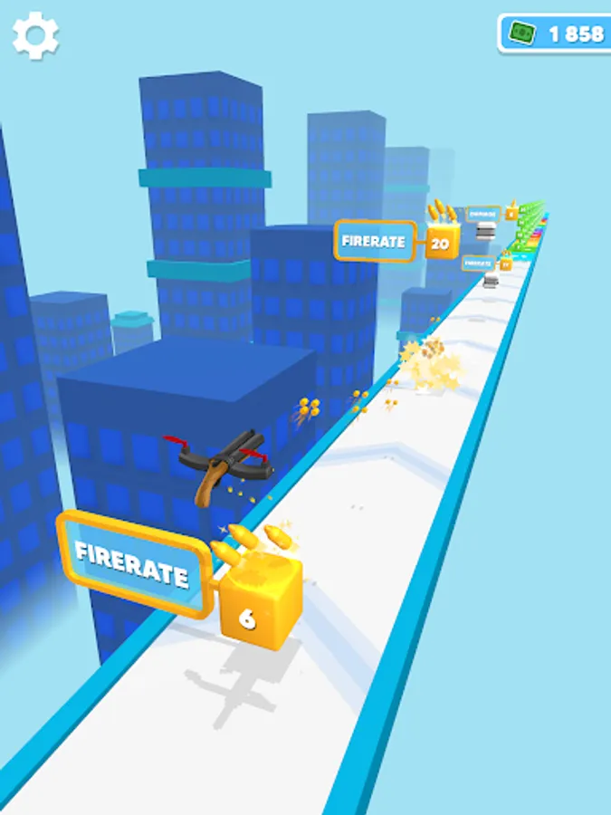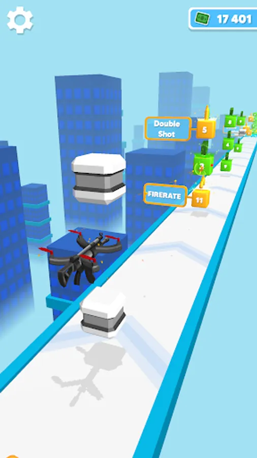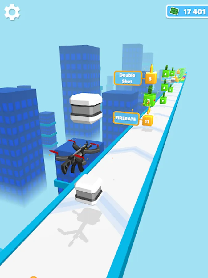 Simply Tap and Release to move your Drone Gun along a path filled with bonuses and objects to shoot at !