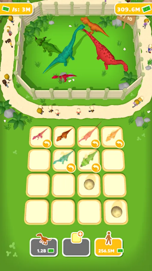 You're the owner of your own dino park, merge two dinos of the same species to discover a new one and maybe the legendary T-Rex? Expose your creations in a box to attract as many tourists as possible and earn a lot of money!