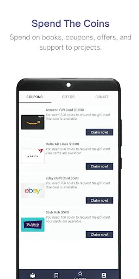 Convert your reading activity into a currency to spend on books, coupons, offers, and support to projects.