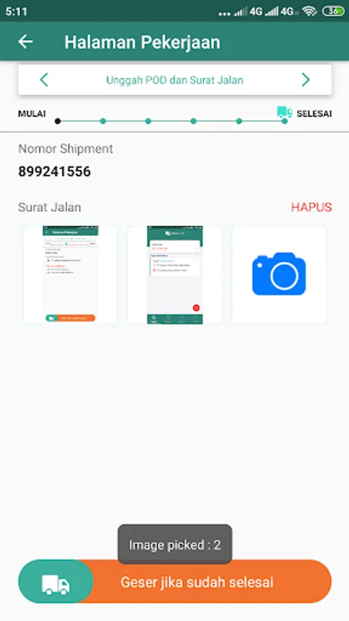 Setiap akhir pengiriman, driver akan diminta mengunggah foto bukti pengiriman berupa surat jalan dan lain lain.