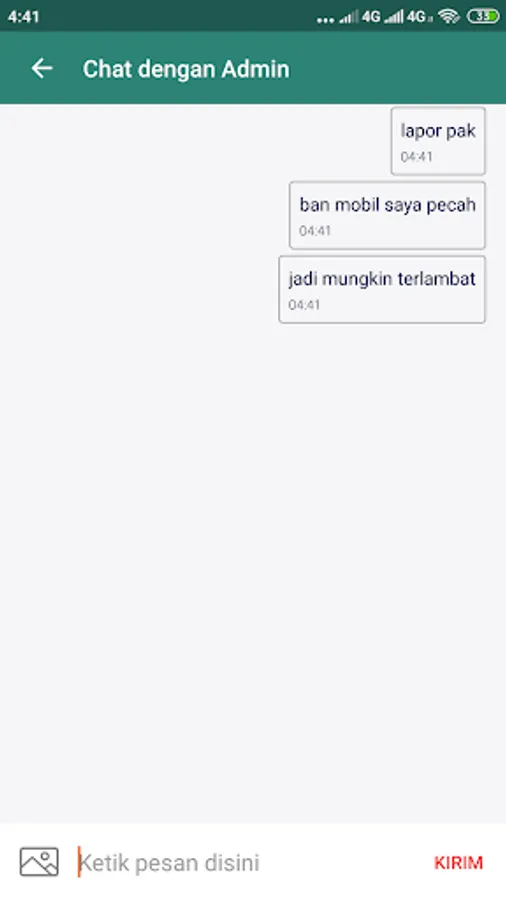 Fitur percakapan juga ditambahkan untuk mempermudah komunikasi antara admin dan driver yang sedang bekerja.