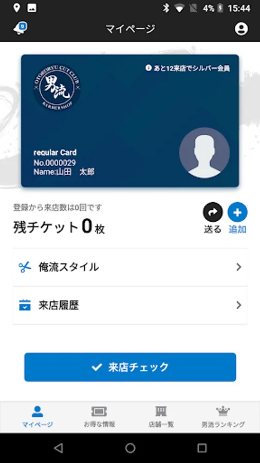 In the masculine CUT CLUB official app, we offer the service that you can come to the store smartly cashless. By clearing the ticket in advance from the app, you can come to the store smartly without getting the price at the time of the visit. Of course, we also offer app user benefits and useful features. Please use all means.