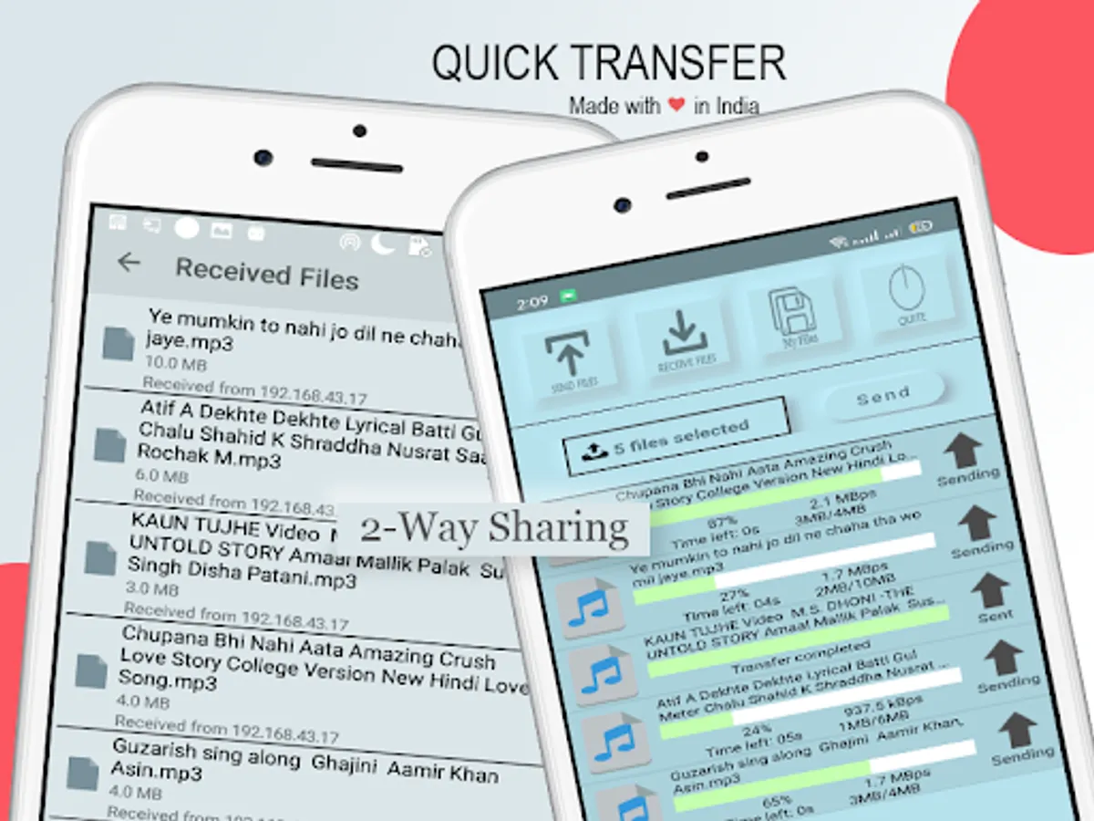 Quick Transfer has simple, clean, and user-friendly files transfer interface. Which makes it very easy to use.