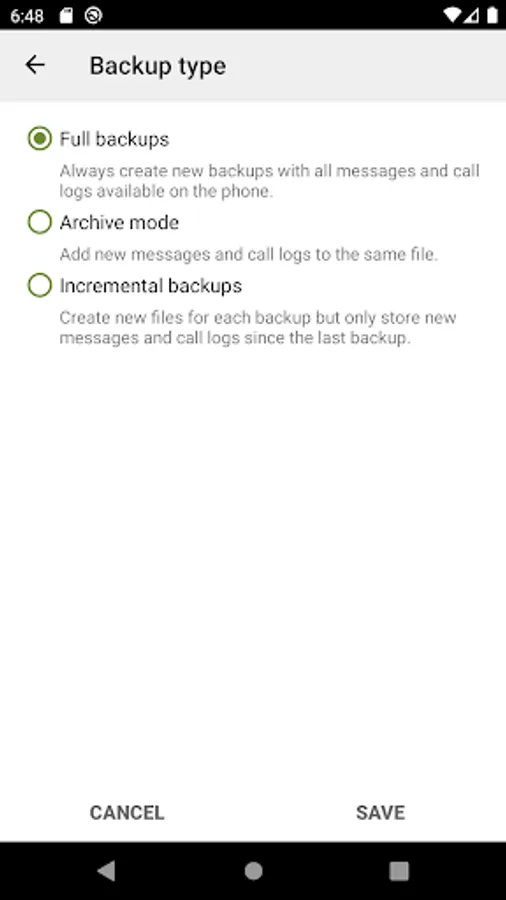 - Backup is created locally on the phone by default, but has options to upload to Google Drive, Dropbox, OneDrive or Email. At no time are the files sent to the developer.