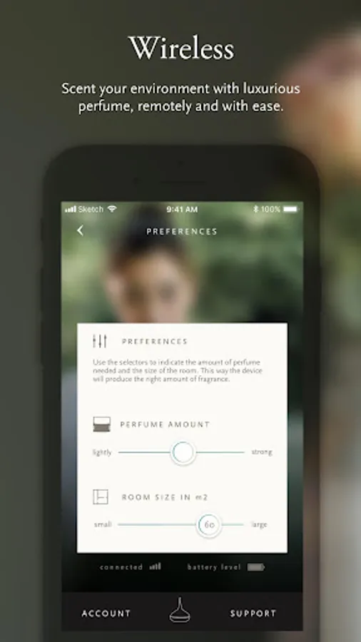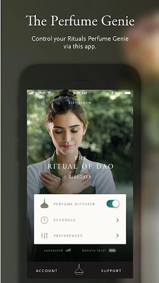 With the Rituals Wireless Perfume Diffuser, you can create the best perfume experience in your house by using various settings in the app. By choosing set times and days, you can always enjoy the lovely Rituals scent when you are at home. Also by determining the perfume strength and size of the room you can experience the perfect perfume intensity. The device can also be controlled without the app, by using the on/off button on the device.