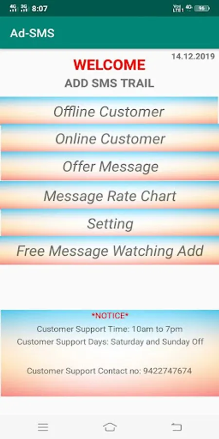 *The application support to your daily billing counting. when you billing in this app when you close application you will total selling amount to your mobile number deliver.