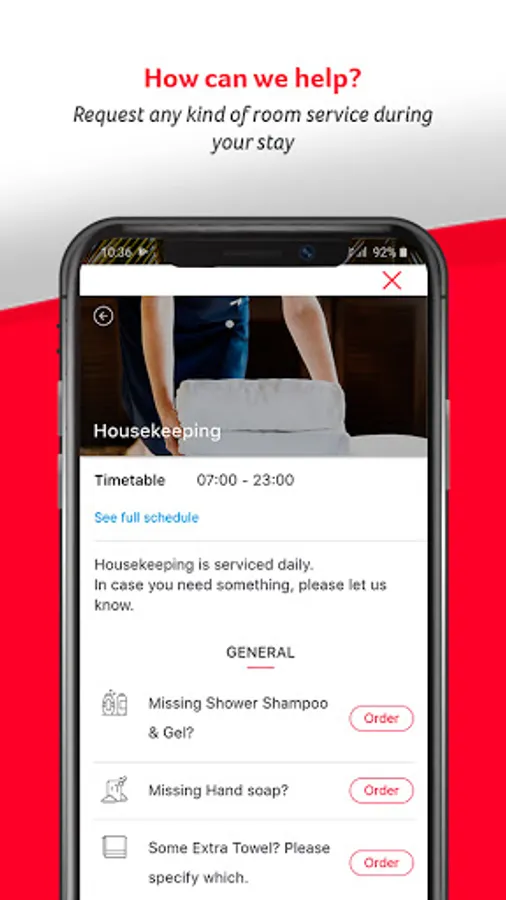 - Book tables at most of our restaurants and spa treatments, request room cleaning or minibar refills.....