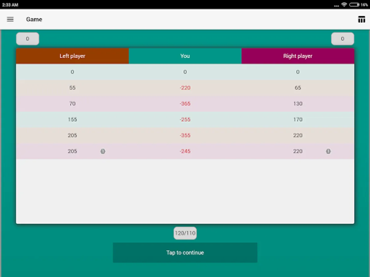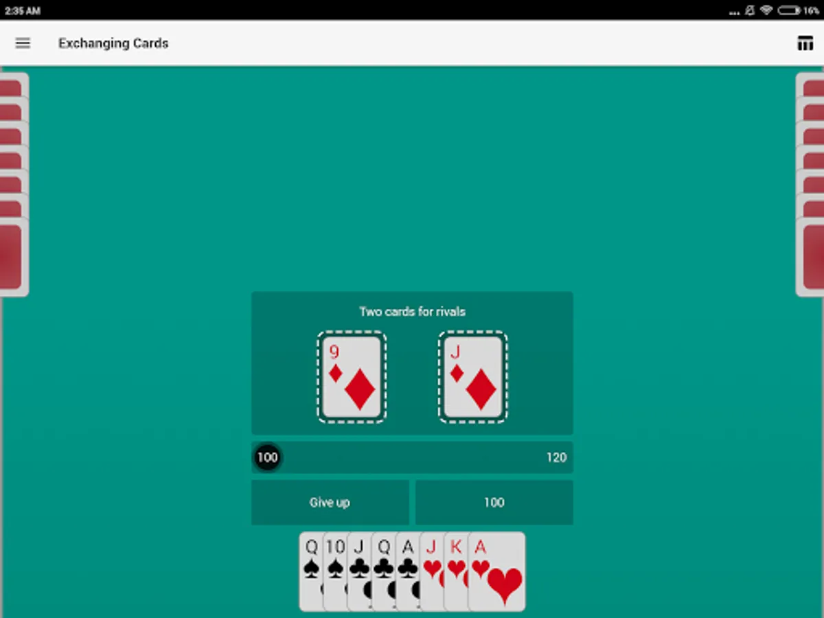 - in case of giving up the player has a fine same as a statement and each of rest two players gets half of that amount