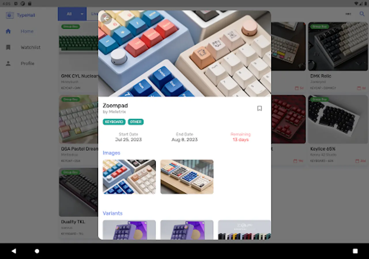 • Display item's group buy schedule, vendors, variants or kits (for keycap kits)