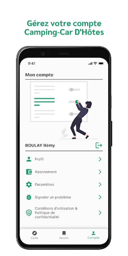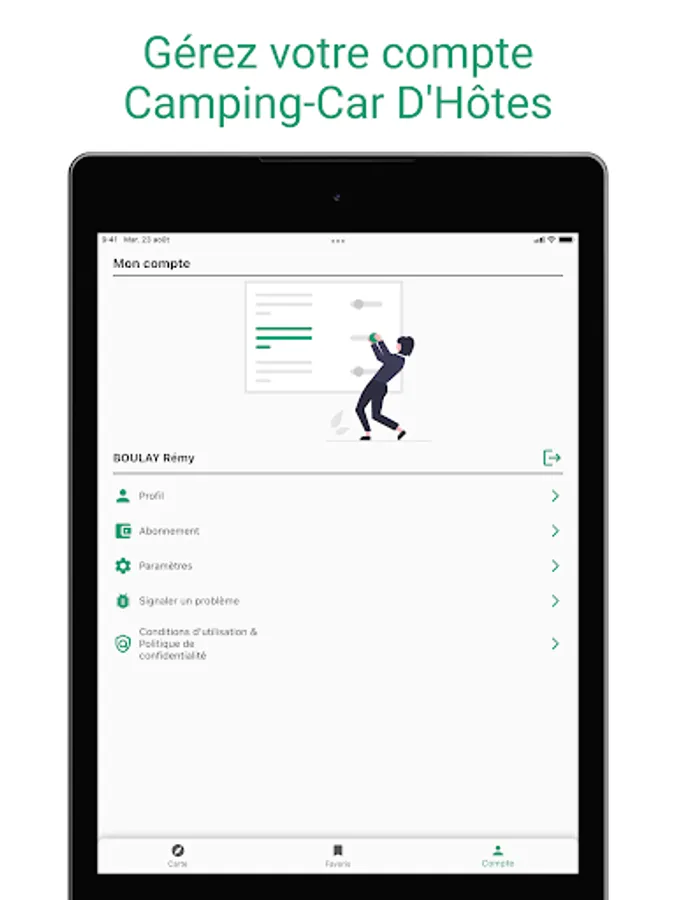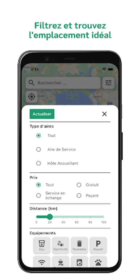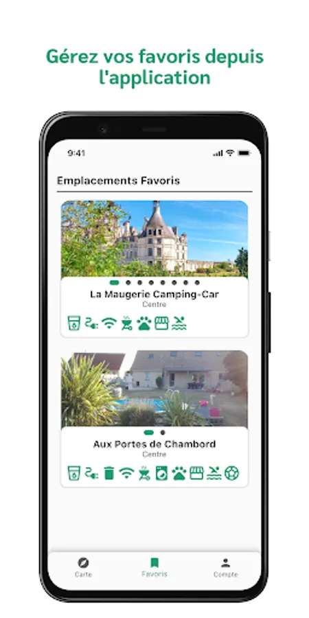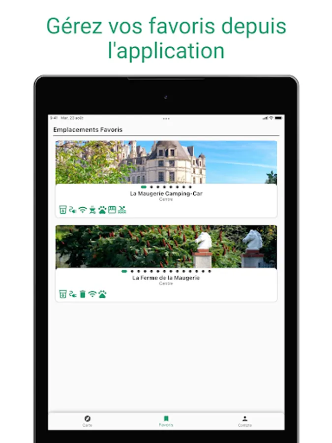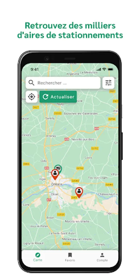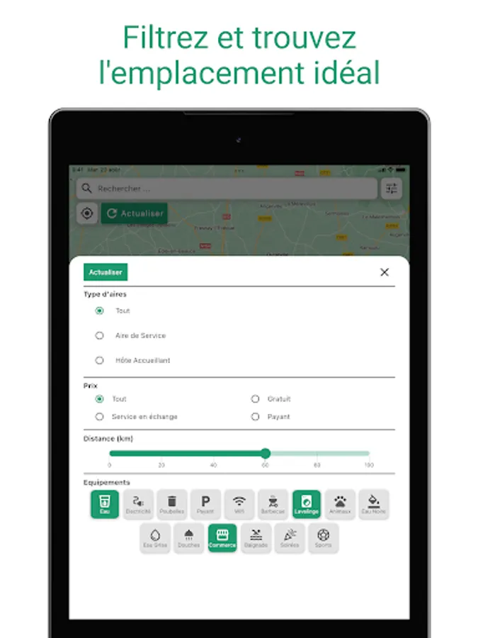 You will be able to log in to manage your account in our new version, manage your subscription, and access the Offline mode for free. You also have a favorites system so you can plan your stages in advance and easily find where you want to stop. You can also use your GPS navigation app (Waze, Maps, etc.) to arrive safely at your destination thanks to our guidance feature.