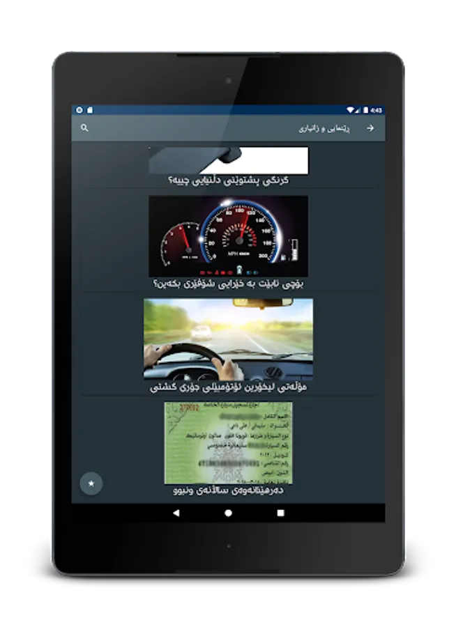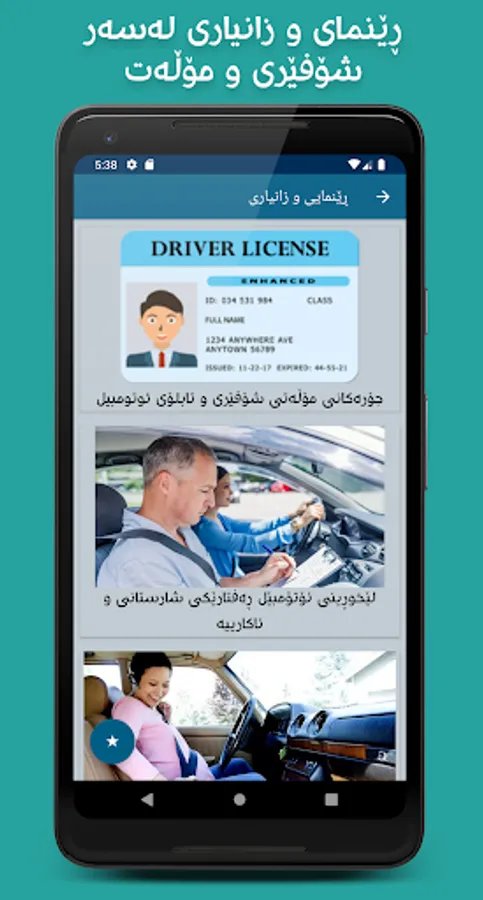 - ڕێنمایی: لەم بەشەدا چەندین زانیاری خراوەتەڕوو سەبارەت بە شۆفێری و ئوتومبێل لەگەڵ زانیاری لەسەر مامەڵە و ڕسوماتەکانی هاتووچۆ.