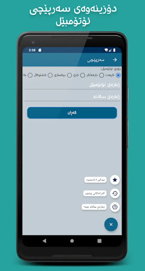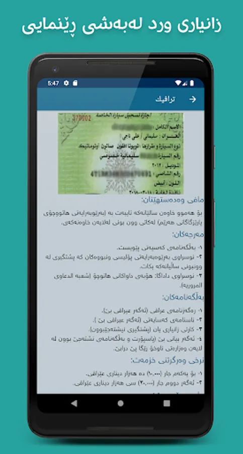 - سەرپێچی: لەم بەشەشدا دەتوانیت کات و شوێن و بڕی سەرپێچیەکانی ئوتومبێلەکەت بدۆزیتەوە.