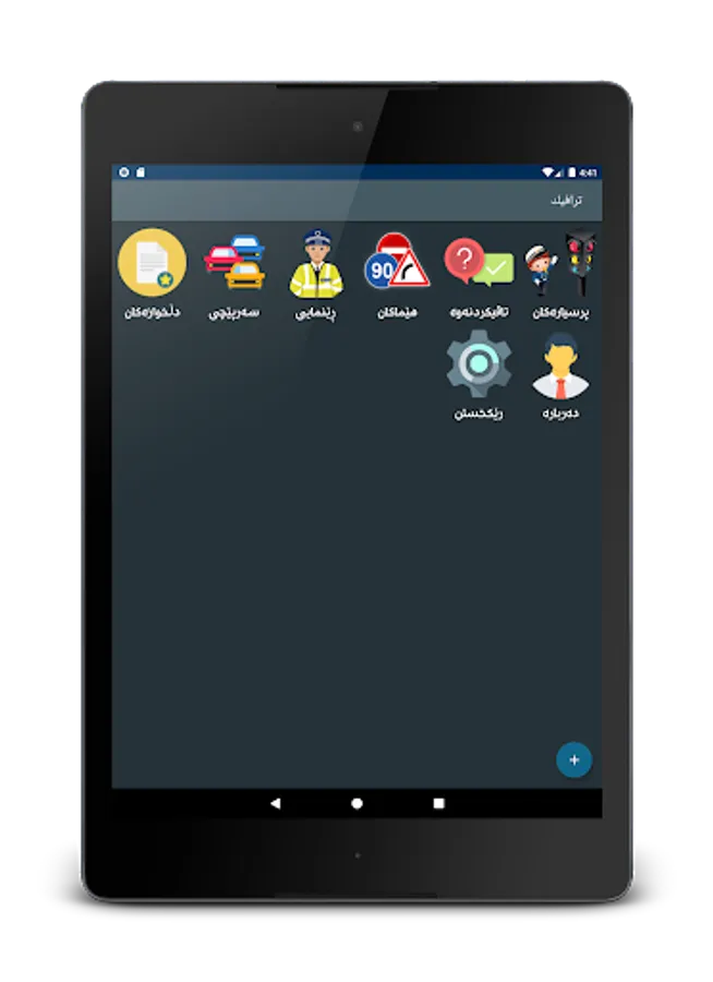 - پرسیارەکان: تیایدا سەرجەم پرسیارەکانی تاقیکردنەوەی تیۆری بۆ دەرهێنانی مۆڵەتی شۆفێری لە خۆدەگرێت و هەر پرسیارێکت بوێت دەتوانیت زیادی بکەیت بۆ لیستی دڵخواز.