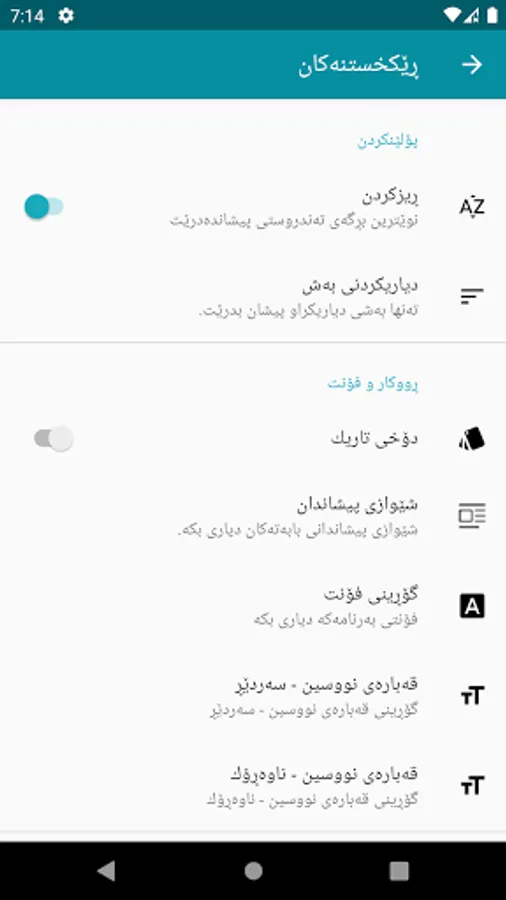 ئەو بەشانەی دەتوانیت بابەتەکانی بۆ پۆلێن بکەیت بریتین لە: