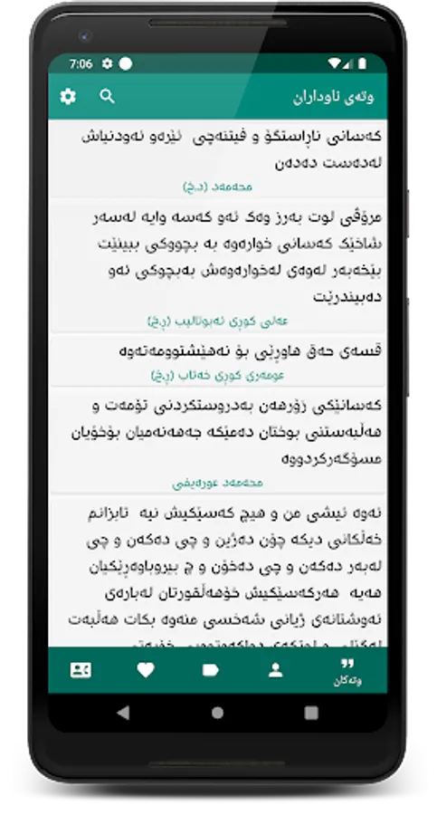 لەبەرنامەکەدا دەتوانیت هەر وتەیەکت بوێت زیادی بکەیت بۆ لیستی دڵخواز تاکو لە بەئاسانی بیدۆزیتەوە لەو کاتەی بتەوێت، هەروەها دەتوانیت گەڕان ئەنجام بدەیت لەسەر وتەکان و پەندی پێشینانەکاندا، هەروەها دەتوانیت وتەکان هاوبەشی پێبکەیت لە تۆڕەکۆمەڵایتەیەکاندا.