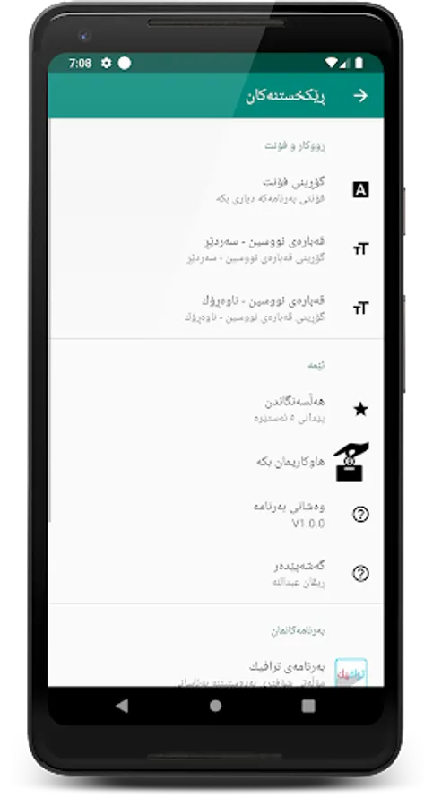 * دەتوانیت قەبارەی نووسینەکانی بەرنامەکە بگۆڕیت، بۆ گونجانی زیاتر.