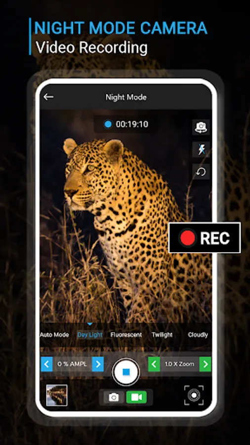 In Night Camera Mode Photo Video you can dynamically change camera sensitivity to achieve the best result as well as set any 1- 10x zoom simultaneously to the recording due to the professional development.
