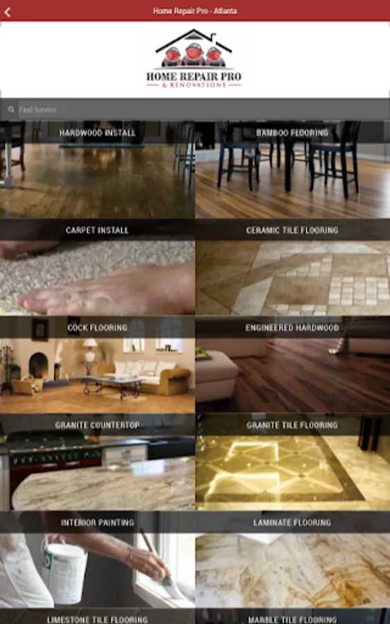 The Home Repair Pro mobile app is a simple at your finger estimation and scheduling application for your local Home Repair Pro team. Covering all of Atlanta, Johns Creek, Alpharetta, Duluth, Buford, Sugar Hill, Cobb, Cumming, Lawrenceville and Suwannee. Book your repair pro day or night with the tap of a finger. Be reminded about your projects with calendar notifications and quickly estimate some interior and exterior home remodeling or repair projects. Forget scanning through online listings to find your licensed home repair professional and select Home Repair Pro and Renovations.