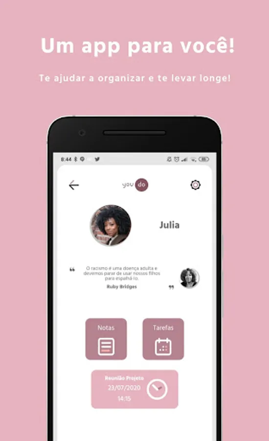 Done in a simple and easy to use way, you can create notes, tasks, as well as discover curiosities about people who have changed society!