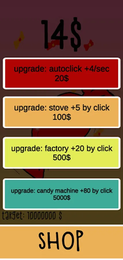 Зарабатывайте конфеты, покупайте улучшения! И зарабатывайте ещё конфеты!!!