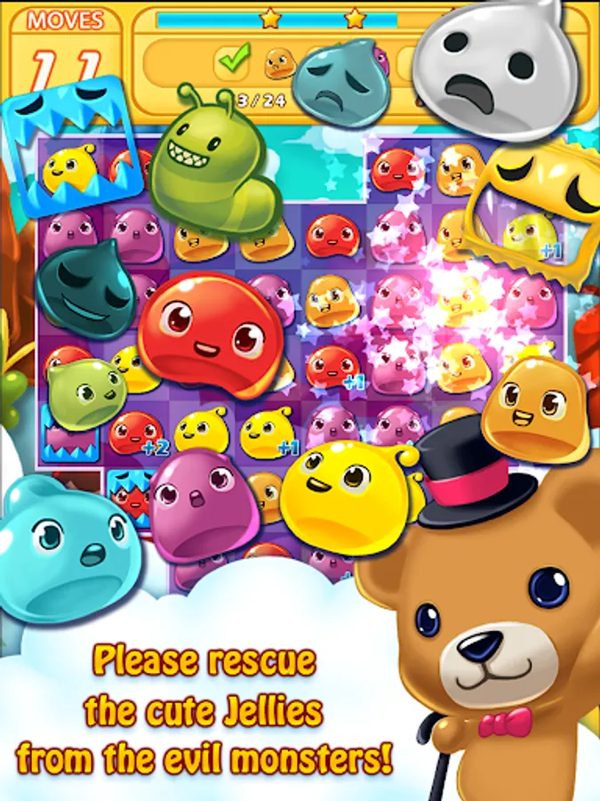★ If you match 3 blocks together, you get a +1 on the jellies around them with fixed probability.