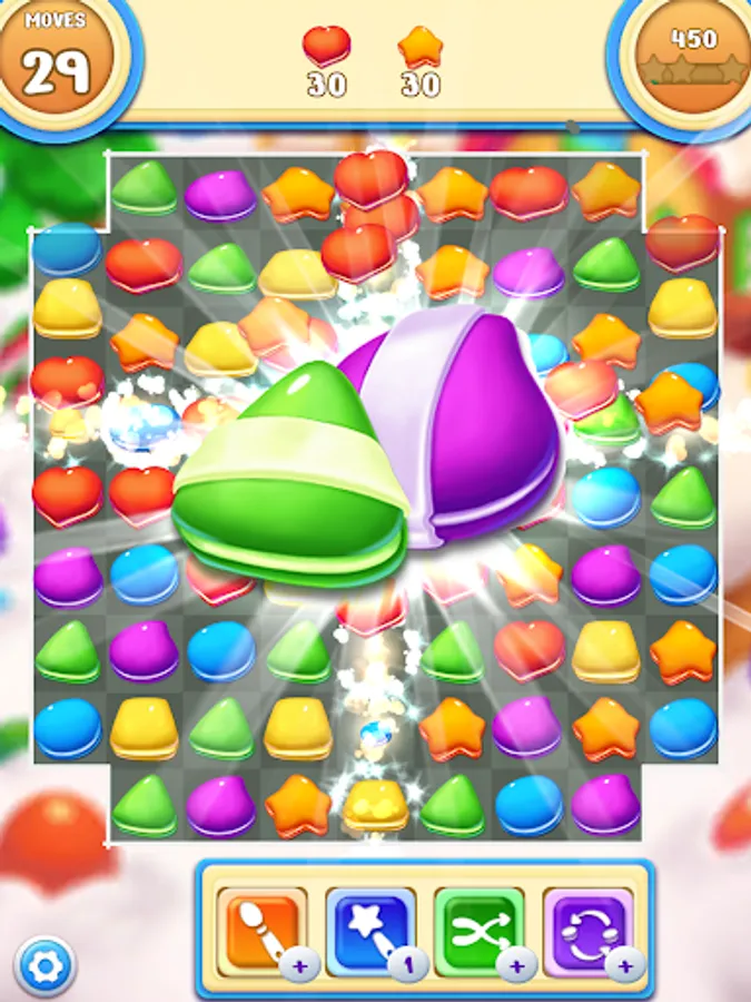 Using classic match 3 games rules makes this puzzle game simple to just pick up and play whenever you want. You'll hear the satisfying crunch of the cookie under your finger when you crush them, and can enjoy trying lots of different strategies in the fun and cute levels full of candy and cake.