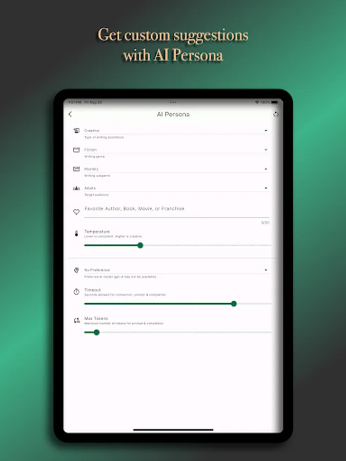 - Optional AI Persona for more personalized and accurate AI suggestions tailored to your writing style.