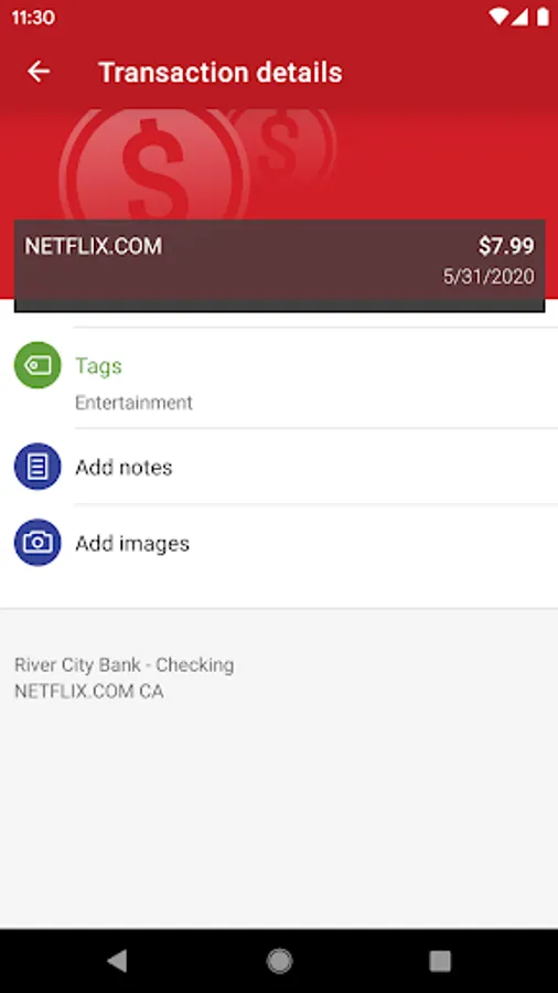 Add Tags, Notes, Images & Geo-Information: By enhancing transactions with custom tags, notes or photos of a receipt or check, you have the ability to stay organized and find exactly what you’re looking for when searching through your finances.