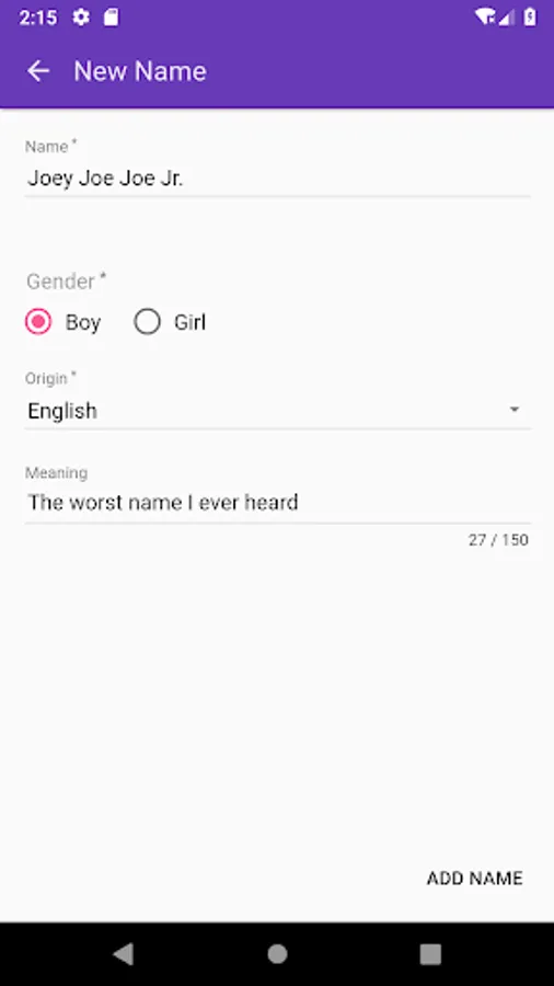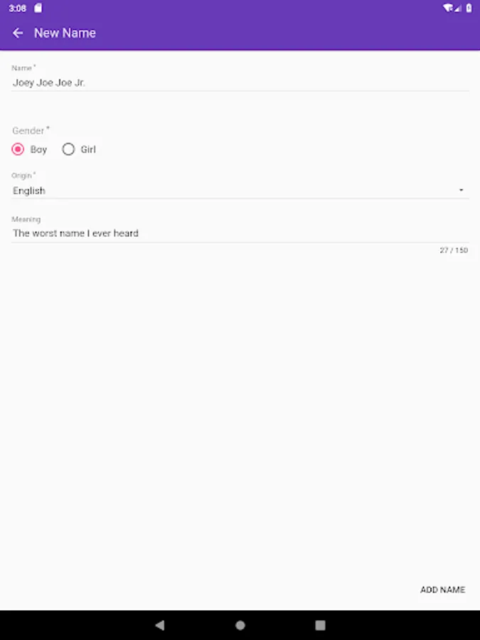 Havin' a baby huh? Need to choose a name huh? Most baby name choosing apps are just so boring. Well look no further!