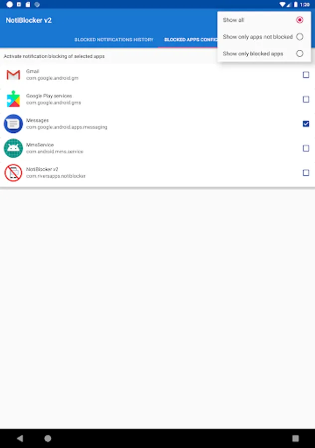 Note: Disable bubble chat on Facebook Messenger to block that notifications, we are working on a update to improve this so NotiBlocker can block bubble notifications