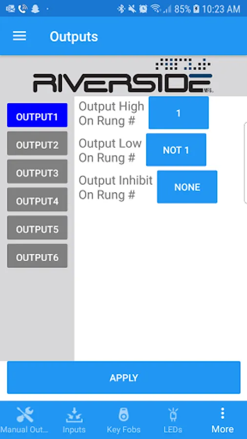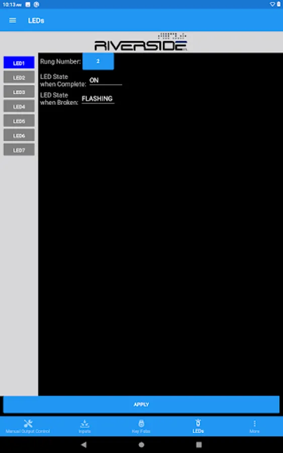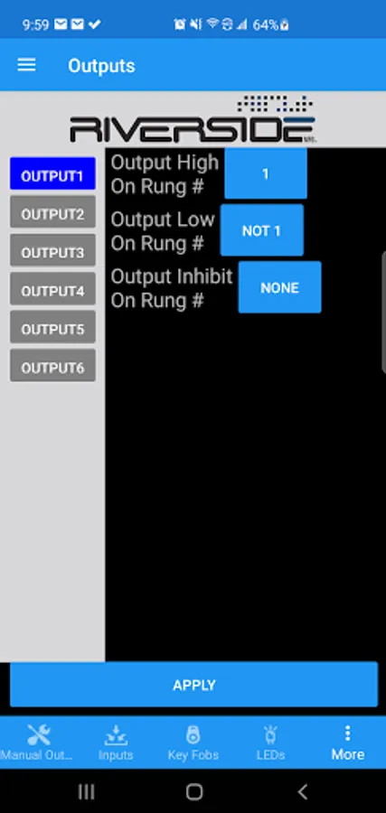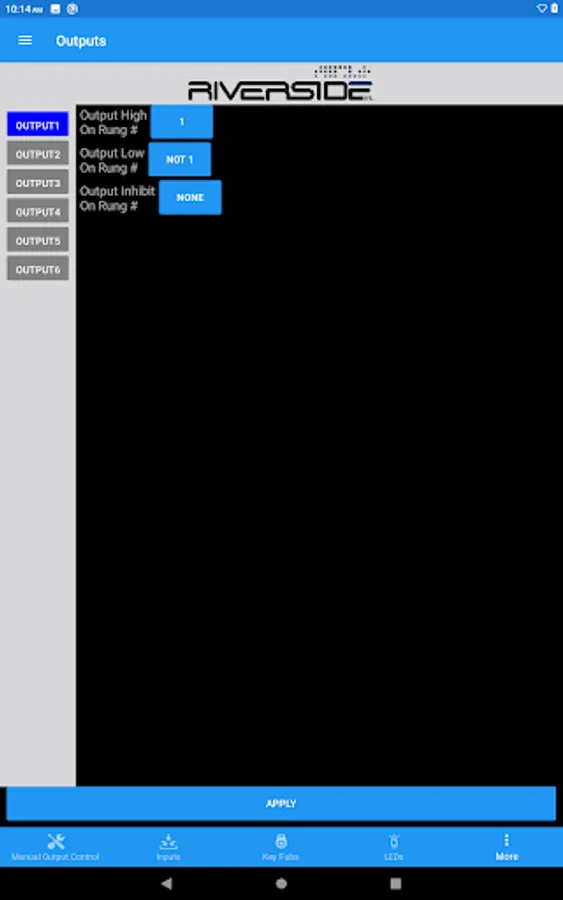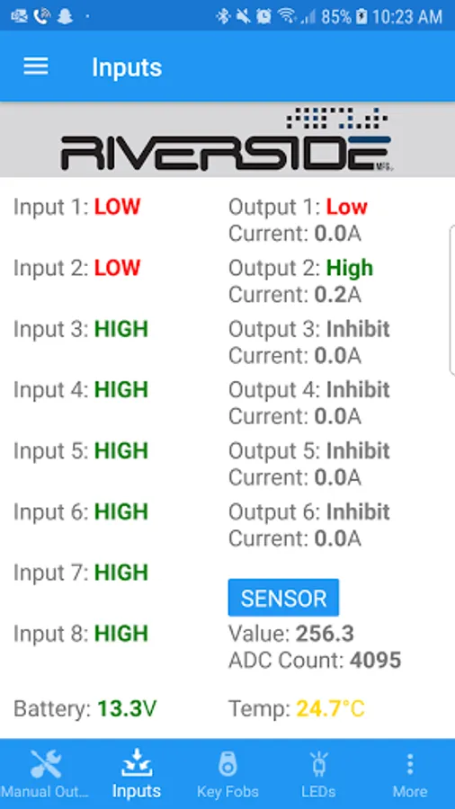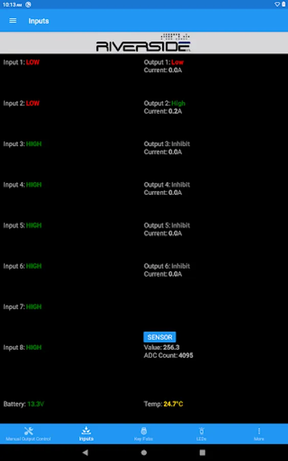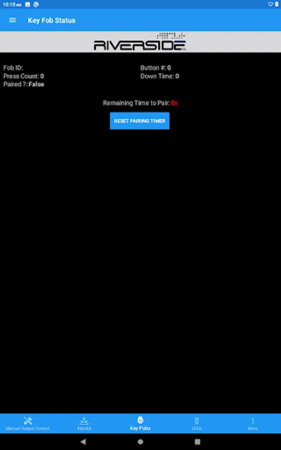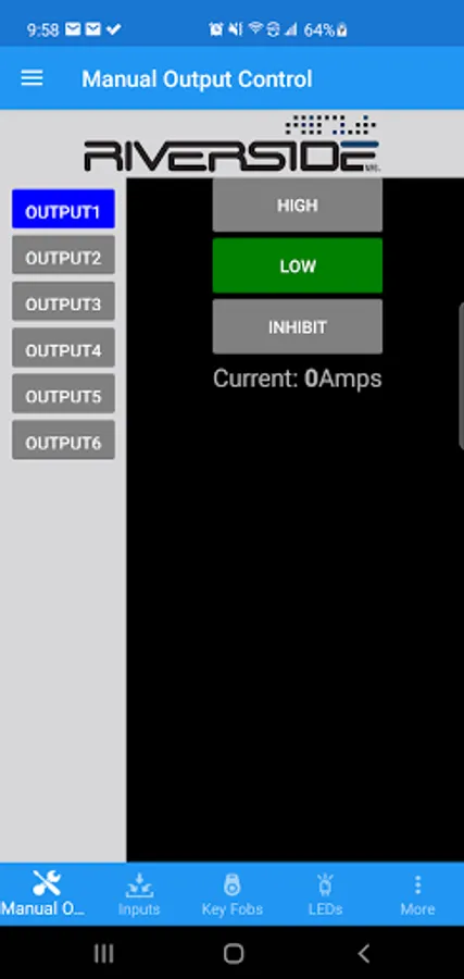 This is the application developed by Riverside MFG, LLC. to control the Wireless Input / Output Controller ECU (a.k.a WIOC).
