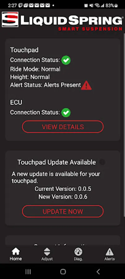 This is the Liquid Spring app that will allow contact with the Driver Interface devices included with the installation of a Liquid Spring smart suspension system!