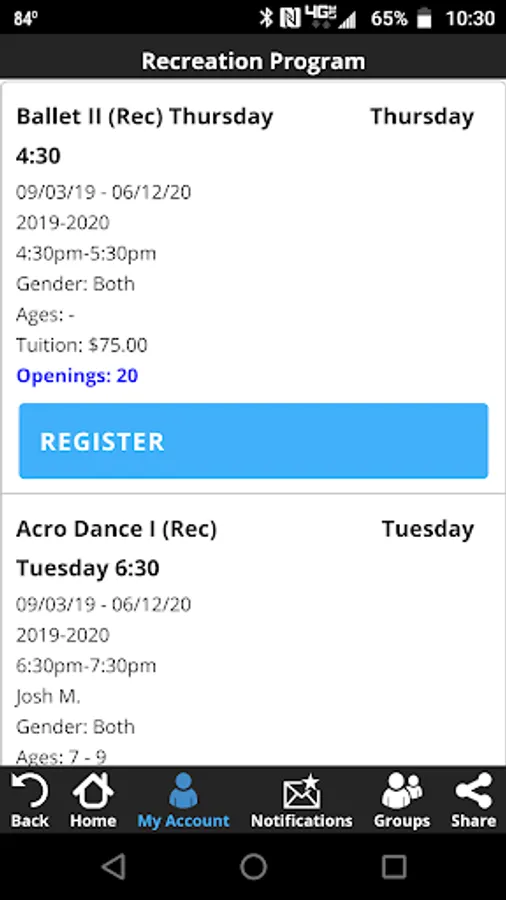 - Have a class in mind? Search by program, level, day, and time. You can register or even put yourself on a wait list.