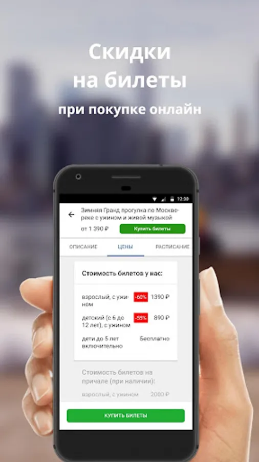 Rivertickets application allows you to find and buy tickets for the ship quickly and easily! Most tickets for river trips are sold in the application with significant discounts of up to 70% on the cost of tickets on the quay or directly on the ship itself during landing.