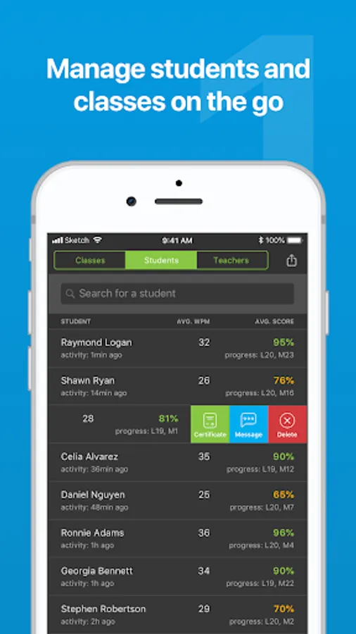 Save time with quick actions - view student progress, send messages, manage classes and email certificates