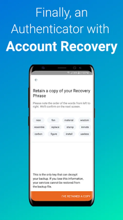 - Secure your backup with a 12 or 24-word mnemonic recovery phrase